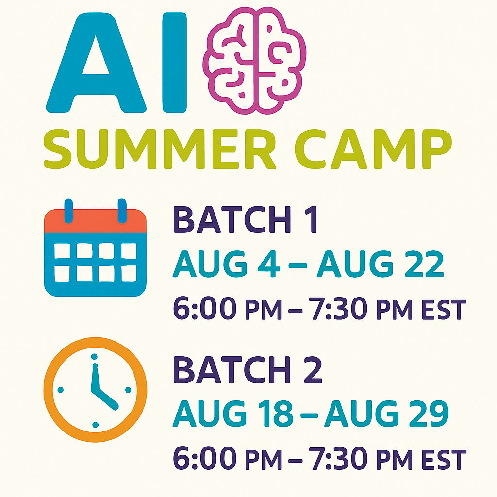 Artificial Intelligence is changing the world, and I believe it’s a skill every child should feel confident with. That’s why I built this camp: I wanted to give my kids (and yours) the opportunity to unlock their potential, discover real AI, and soar toward a future full of possibility.